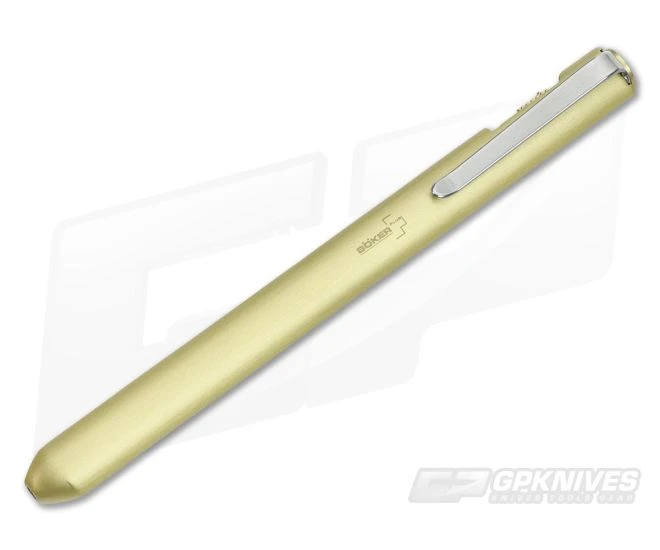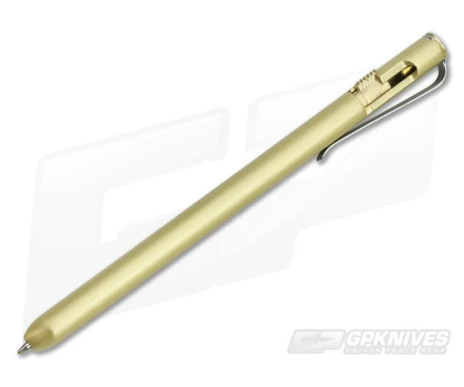 This Boker Plus version is built from solid Brass with black ink installed. The brass construction of this version gives the pen an excellent hand feel and will form a unique patina with time and use. It’s also simple and solid with its four-piece construction. Minus the ink cartridge and spring, it consists of the pen body, the bolt, pocket clip and end screw. That’s all there is to it! The end screw is a Torx.