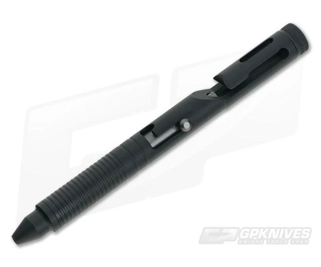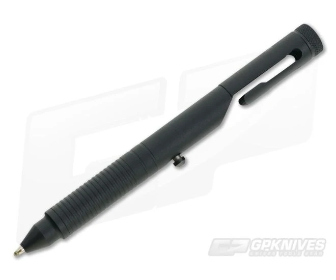 Boker Plus Tactical Ink Pen CID CAL .45 with black finish is a design by Rainer Wenning and knife maker Thomas Braunagel that puts a twist on tactical writers. The pen’s body is CID .45 CAL hardcoat anodized CNC milled lightweight yet sturdy aluminum for style and ergonomics. The “bolt action” mechanism with “click” open and close provide a unique smooth action. The Clip Integrated Design (CID) is an integral sturdy clip that makes for easy placement and draw in and out of pockets. The flat pen head thumb rest makes an effective self-defense tool. This model takes LAMY #M22 ink refills.