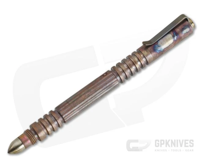 The Hinderer Knives Investigator Modular Pen with Black Ink is crafted from CNC machined Copper with milling on the body for a great feel and added traction in the hand and the new “Battlefield Pickup” finish. This is one battle-tough pen that will handle all your every day writing tasks while maintaining a high-speed, low-drag profile. The “Battlefield Pickup” finish is a heavy patina that gives each pen a unique, worn and weathered finish.