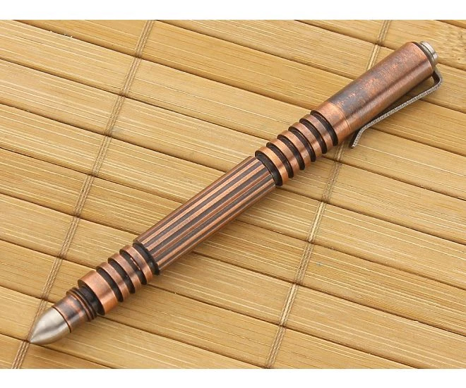 Heretic Knives Thoth Stonewashed Titanium and Copper Modular Bolt Action Ink Pen H038-TI-CU