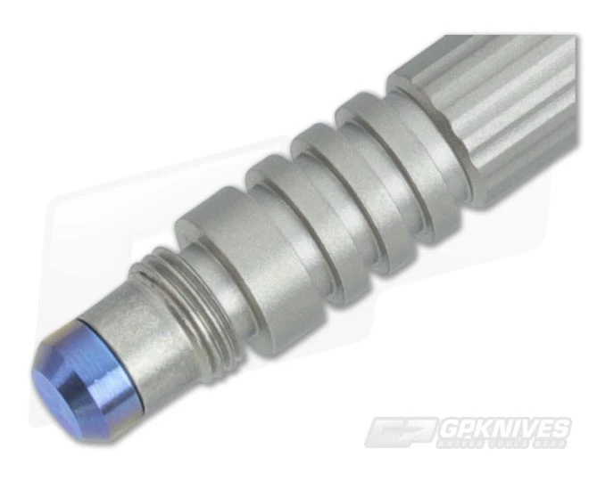 Hinderer Knives Titanium Flat End Attachment fits all Investigator Pens. CNC machined of titanium and anodized blue. Brand new direct from Hinderer Knives.