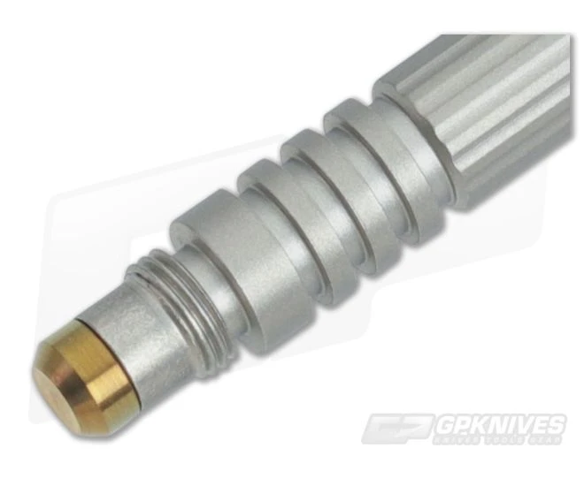 Hinderer Knives Titanium Flat End Attachment fits all Investigator Pens. CNC machined of titanium and anodized bronze. Brand new direct from Hinderer Knives.