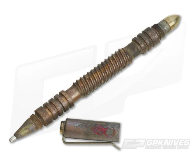 The Hinderer Knives Investigator Modular Pen with Black Ink is crafted from CNC machined Copper with Spiral milling on the body for a great feel and added traction in the hand and the new “Battlefield Pickup” finish. This is one battle-tough pen that will handle all your every day writing tasks while maintaining a high-speed, low-drag profile. The “Battlefield Pickup” finish is a heavy patina that gives each pen a unique, worn and weathered finish.