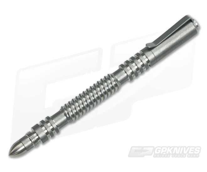 The Hinderer Knives Investigator Modular Pen with Black Ink is crafted from CNC machined Titanium with a tumbled finish on the body with polished grooves and Spiral milling on the body for a great feel and added traction in the hand. This is one battle-tough pen that will handle all your every day writing tasks while maintaining a high-speed, low-drag profile.