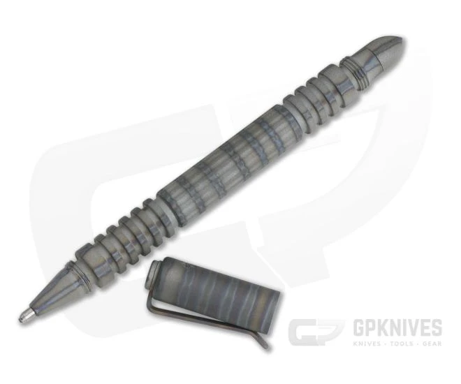 The Hinderer Knives Investigator Modular Pen with Black Ink is crafted from CNC machined Titanium and fully flame anodized from cap to clip. This finish is unique from piece to piece and is both rugged and visually appealing.