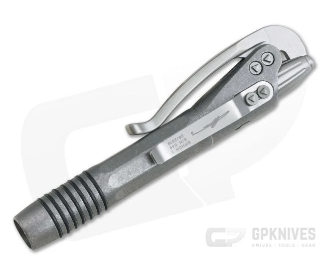 The Signature Series Siphon II Ink Pen from Microtech Knives is an innovative every day carry pen with unique lever operation. This finely crafted writing tool has a stainless steel body with a fully Stonewashed finish that hides wear for use and carry. It’s a conveniently sized (just under 4″ closed) package that expands into a comfortable utensil. This Signature Series is engraved with a Skull engraved on the body.