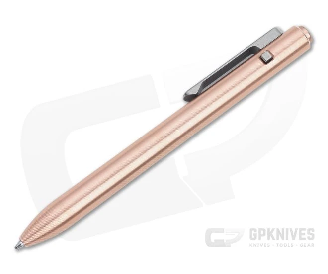 The Tactile Turn Side Click offers a solid all-metal construction with rugged two-piece click mechanism that is as satisfying as it is durable. Equipped with the iconic Tactile Turn milled texture, the body offers a sure grip, excellent control when writing and a satisfying feel in the hand. The click mechanism has a fidget friendly action and enjoyable sound. The Short 5.3″ size comes with a Schmidt EasyFlow 9000 medium refill. This version has a copper body and titanium clip.