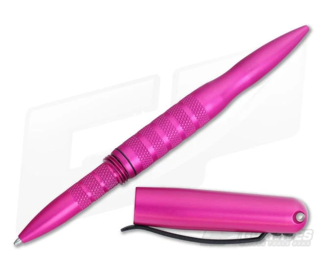 The Tuff-Writer Operator Series Pen in Pink with Black ink takes tactical writers to a whole new level. Constructed from 6061-T6 aerospace grade aluminum, the body gets a satin finish non-marking surface treatment before being hard anodized gray to MIL-A-8625 “F” specifications. This durable finish reduces glare and fingerprint markings. Built with a sharp/pointed end as well as rounded with the point doubling as a PDA stylus. The twist on and off cap fits snugly on the back of the pen when writing. An attached cold-pressed spring steel clip has a textured non-reflective powder coat finish. Black oxide stainless steel bolts and chemical welding construction. Includes Extra Tuff pen case and accepts Fisher Space ink refills – #SPR4. To prevent the tip from vibrating loose, the tip of the pen has been engineered as left hand threaded. Just remember when changing the ink cartridge that the pen’s tip goes righty-loosey.