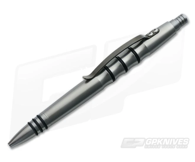 This “clicky” tactical pen features body and tip machined out of solid titanium before getting a hand-brushed finish. The body of the pen has been comfortably contoured and also has removable black Duron O-rings for a secure grip.