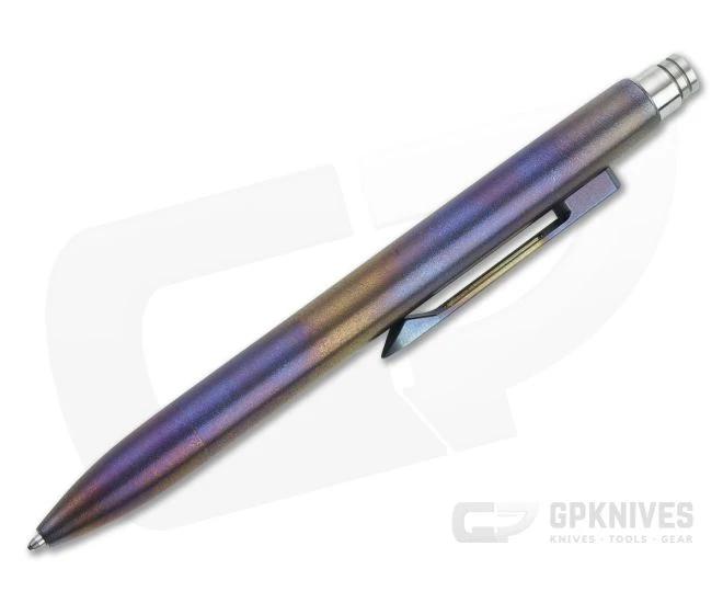 The Tuff-Writer Retro Click offers a sleek modern design with tactical build quality. Utilizing their famous 416SS machined advancing mechanism with a two piece bearing-cam design, the Retro Click delivers silky smooth action with an ultra quiet operation. The modular titanium construction makes this pen tough and lightweight, with a stylish smooth barrel and o-ring free design. Body and tip have a brushed flame anodized finish. Carries via a matching milled titanium clip.